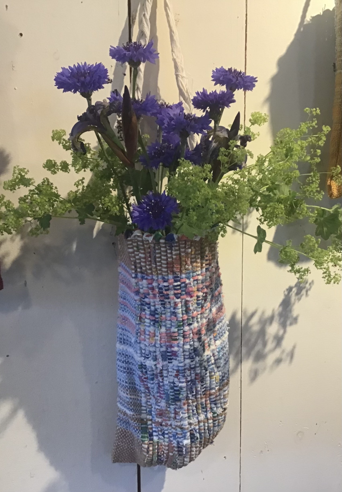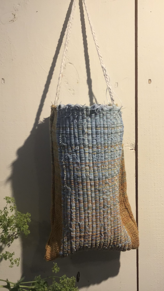 "It all started with me making these hand-woven wall pockets from recycled jeans.